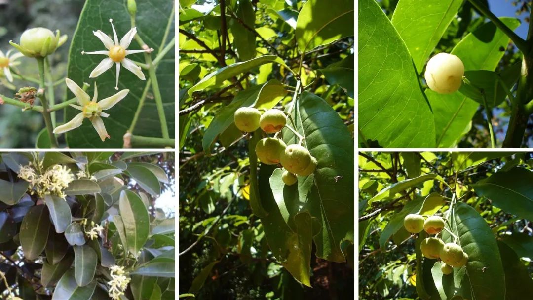 芸香科常绿乔木,高约10米,可达20米。树皮平滑,小枝绿色。单叶对生,纸质,矩圆形至长椭圆形,长6-15厘米,宽2.5-6厘米,两端狭尖,全缘,上面表绿色,光亮,网脉两面浮凸;叶柄顶端有1结节。聚伞花序腋生,常生于枝的近顶部,表白色;萼片4;花瓣4,条形或狭矩圆形,两侧边缘内卷;雄蕊8,花丝中部以下两侧边缘被毛;子房密被毛,花柱细长。核果黄色,平滑,半透明,直径8-10毫米,味甘。叶与枝含芳香油,作化妆品原料。果可食。