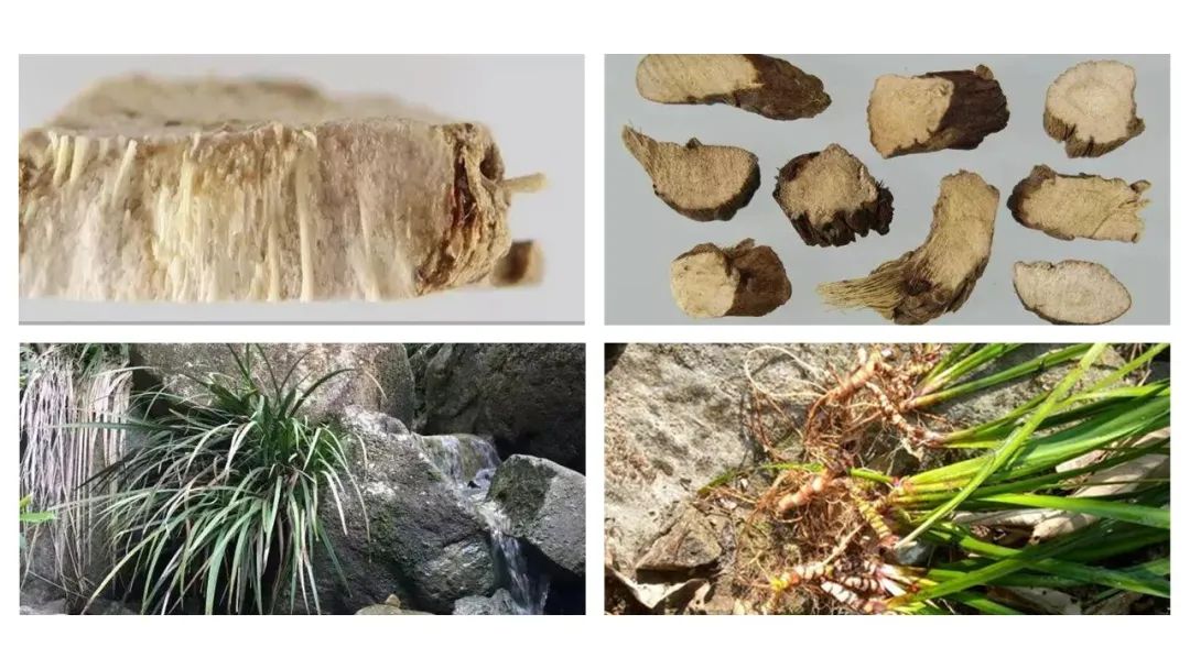 来源于天南星科植物石菖蒲的干燥根茎。性温,味辛、苦,功效化湿开胃,开窍豁痰,醒神益智。药材性状:呈扁圆柱形,多弯曲,常有分枝,长3~20cm,直径0.3~1cm,表面棕褐色、棕红色或灰棕色,粗糙,有疏密不均的环节,具细纵皱纹;上面有略呈三角形的叶痕,左右交互排列;下面有圆点状根痕或残留须根;节部有时可见毛鳞状叶基残留。质硬脆,折端面纤维性,类白色或微红色,内皮层环纹明显,可见多数散列维管束小点及棕色油点。气芳香,味苦、微辛。根茎呈扁圆柱形,稍弯曲,常有分枝,长3~20cm,直径0.3~1cm。表面棕褐色、棕红色或灰黄色,粗糙,多环节。