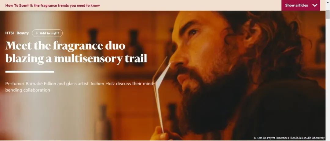 BARNABÉ FILLION和JOCHEN HOLZ谈到他们的合作——一系列引人注目的玻璃瓶包装着一系列新的香水——首先浮现在脑海中的不是气味,甚至不是美学。它是声音:“我记得在约晨的工作室里,我被音乐所鼓舞,”法国调香师菲利昂说。“我们当时听的是电子音乐的女先驱伊莱恩·拉迪格和波琳·奥利弗罗斯,她们实际上是这系列香水的灵感来源。”