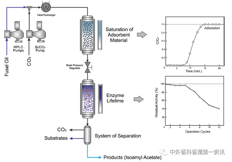 在二氧化碳利用杂志(Journal of CO2 Utilization)发表的一篇文章描述了利用超临界二氧化碳(SC-CO2)作为反应介质进行生物催化的过程,以提高反应转化率。根据文章内容,由于对新鲜和天然产品需求的增长,生产天然香精的一些新的制备方法受到很高的关注。[3]