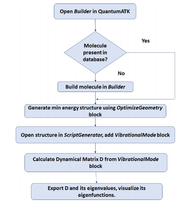 用量子矩阵中动力学矩阵计算分子振动谱的流程曲线图: